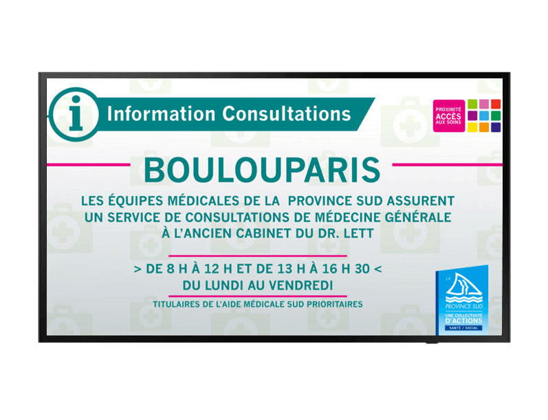 En remplaçant les magazines et affiches papier par un affichage numérique innovant et écologique, vous modernisez votre espace et facilitez la diffusion d’informations essentielles. Campagnes de sensibilisation, consignes sanitaires, conseils médicaux, aides administratives ou encore annonces internes : vos messages gagnent en visibilité et en impact.