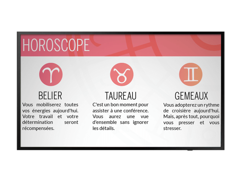Diffusez des messages essentiels : conseils de prévention, services proposés, consignes d’hygiène. Grâce à une mise à jour instantanée, vos informations restent toujours actuelles et pertinentes.