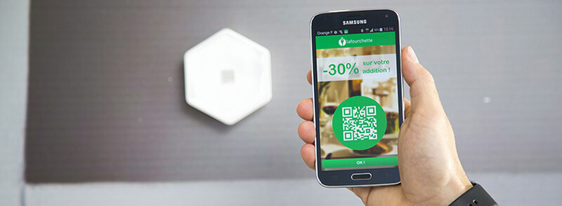 Ainsi, lorsqu’un smartphone passe dans la zone de détection du boîtier, celui ci peut lui transmettre des messages contextuels sous couvert que l’utilisateur ait téléchargé l’application iBeacon et activé son Bluetooth.