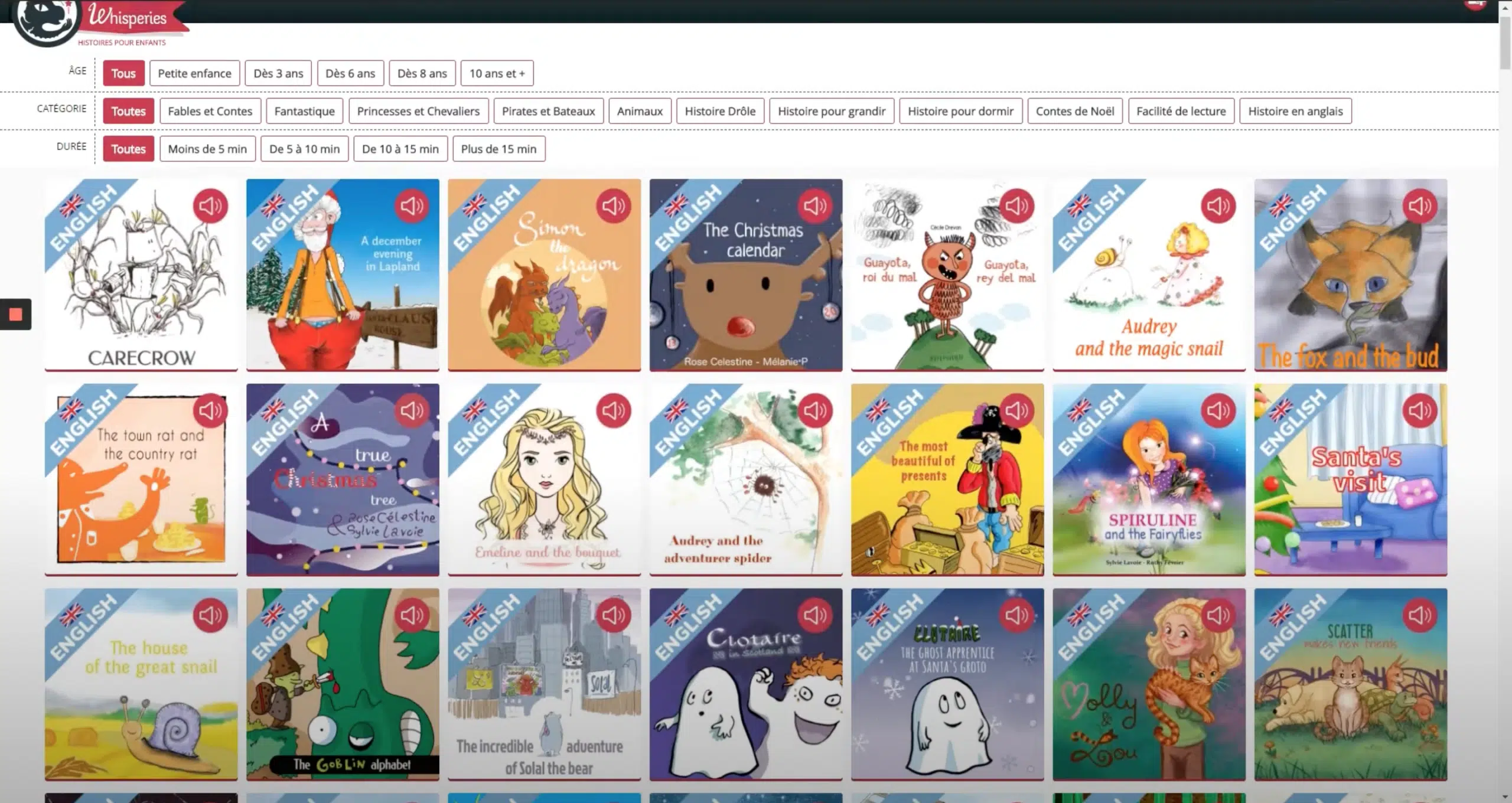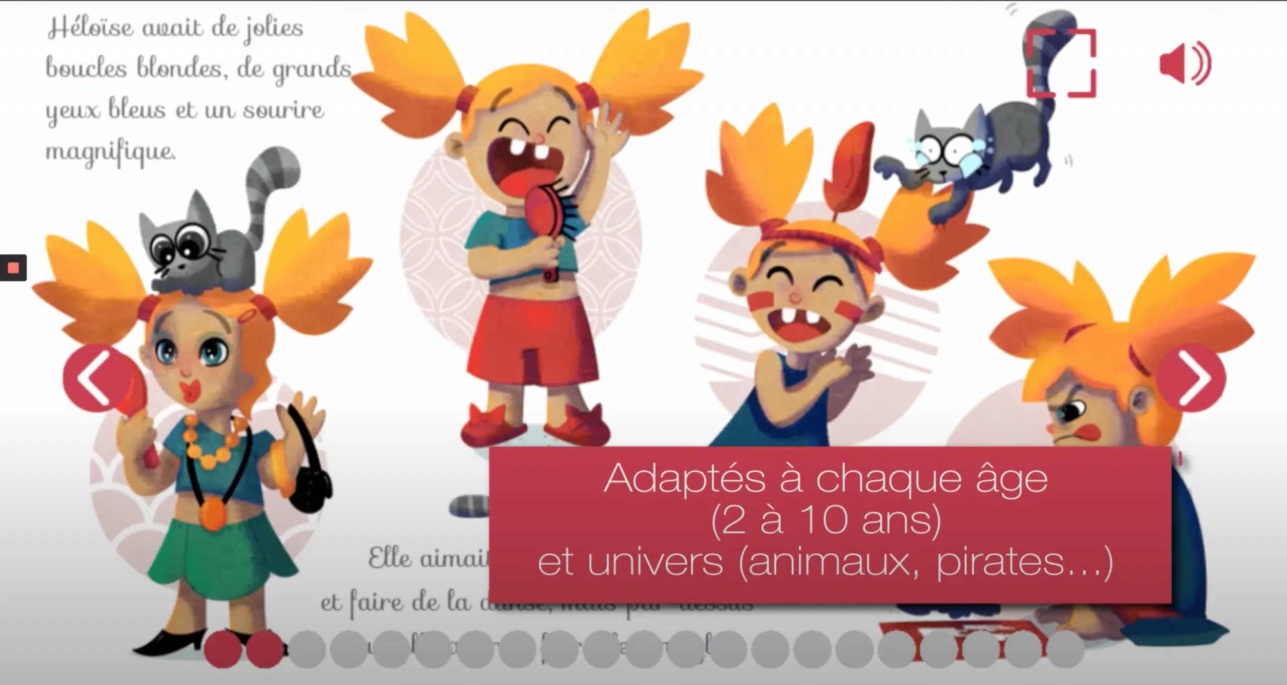 Les histoires interactives s’adaptent selon les besoins des enfants grâces aux différentes catégories.