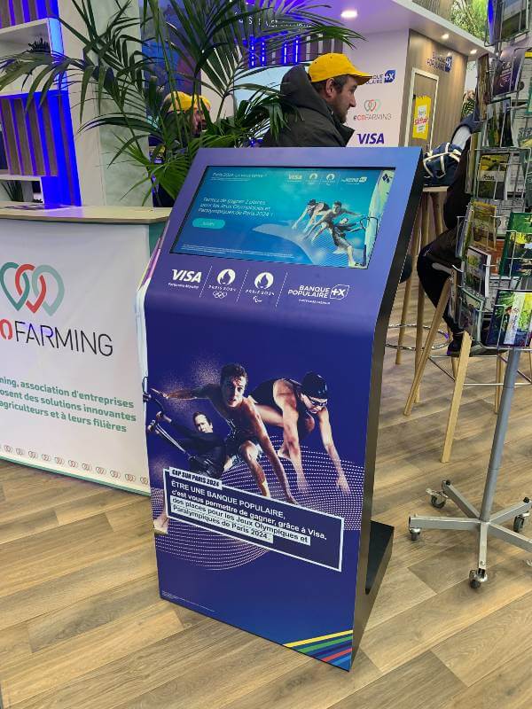 Ces habillages personnalisables intègrent parfaitement la borne à son environnement, reprenant les couleurs de votre marque ou de l’événement. Cela valorise votre image et attire l’attention, vous démarquant de la concurrence. Économiques par rapport aux signalétiques traditionnelles, ils sont idéaux pour les salons.