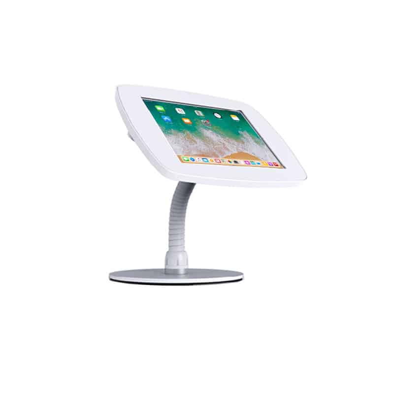 Le support comptoir iPad a été conçu pour garantir à la fois stabilité et ergonomie. Sa structure robuste assure que la tablette reste solidement fixée, même dans des espaces à fort passage, tandis que son design élégant s’intègre harmonieusement sur un comptoir ou un bureau. L’iPad peut être utilisé en mode portrait ou paysage, permettant aux professionnels de présenter des informations, d’interagir avec des applications ou de collecter des données de manière intuitive. Cette flexibilité en fait un outil indispensable pour les environnements où la mobilité et l’accessibilité sont essentielles.