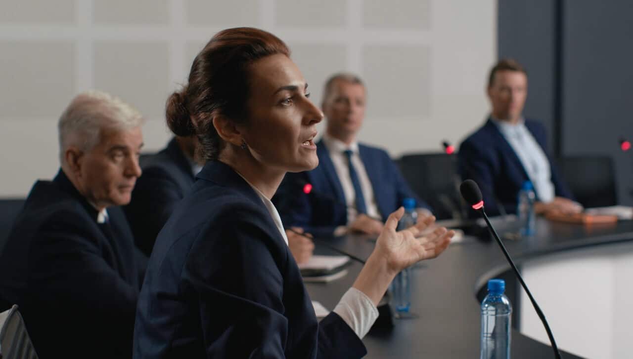 Notre solution s’articule autour d’un dispositif informatique de dernière génération et d’un logiciel dédié à la diffusion de vos vidéos. Côté matériel, on retrouve une caméra 360 degrés pour la captation de l’image. Elle zoome automatiquement sur un participant, lorsqu’il prend la parole. Chaque participant est équipé d’un micro individuel, posé sur son espace de travail, pour la captation du son. Quelque soit la superficie et l’agencement de votre salle, la solution s’adapte et garantit une parfaite restitution des échanges.