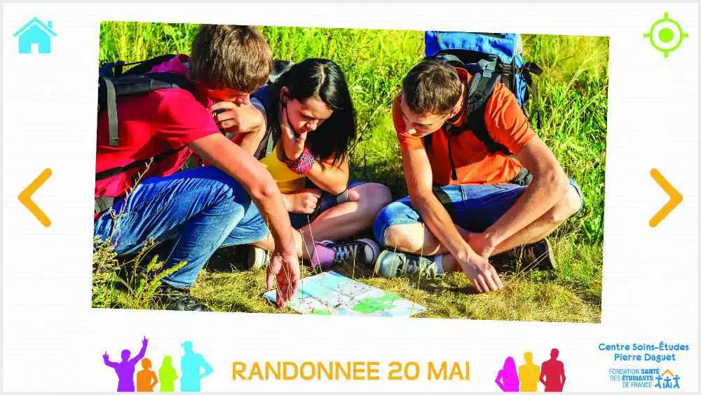 L’application permet aux utilisateurs de naviguer librement à travers différents modules de présentation du centre. Ces modules mettent en lumière les valeurs de l’établissement, la singularité du modèle soin-études, ainsi que des éléments concrets comme la charte déontologique, les actions autour de la prévention en santé publique, ou encore les activités proposées, comme la pratique du handisport.
