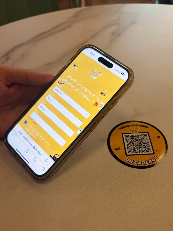 Le jeu attire l’attention du client à un moment clé (après son expérience d’achat). En scannant le QR code, il est redirigé vers une page qui l’incite à laisser un avis pour participer à un jeu. Cette motivation augmente considérablement le taux de participation.