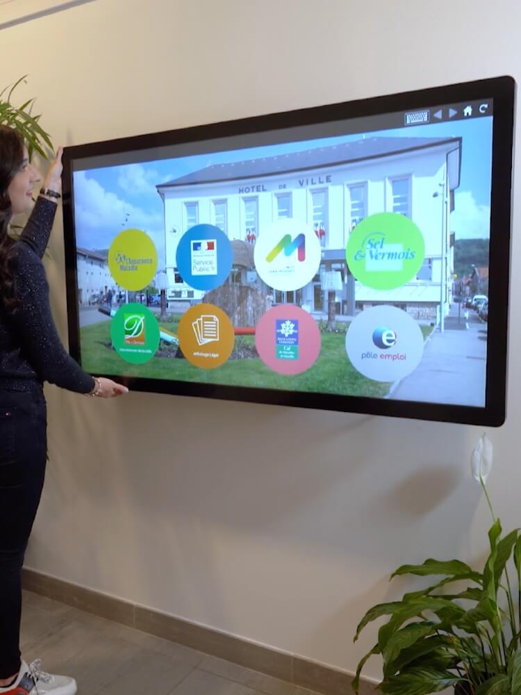 L’écran tactile ANDROID est une solution qui permettra aux mairies, CCAS et entreprises d’afficher simplement leur site. Munis d’une connexion internet, vous pourrez présenter et valoriser vos services en permettant à vos collaborateurs de naviguer librement. Plusieurs autres logiciels sont proposés en fonction de l’utilisation que vous souhaitez faire de votre écran tactile.