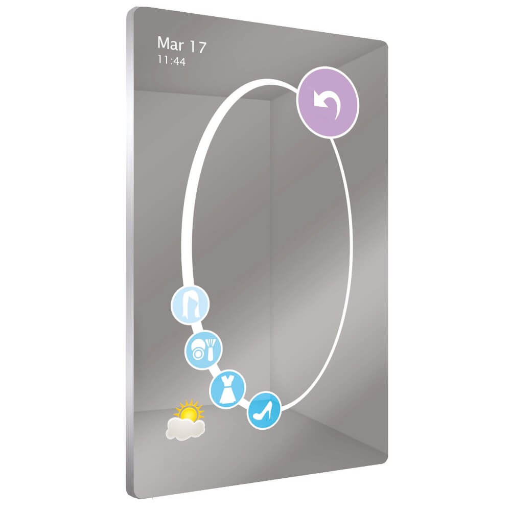 Le miroir renvoie un reflet augmenté, c’est-à-dire enrichi de différentes parures virtuelles. Grâce à ses applications et fonctions connectées intégrées, vous pouvez notamment y intégrer des infos pratiques de manière permanente comme la météo ou l’heure, ou interagissent avec des services comme une cabine d’essayage virtuelle.