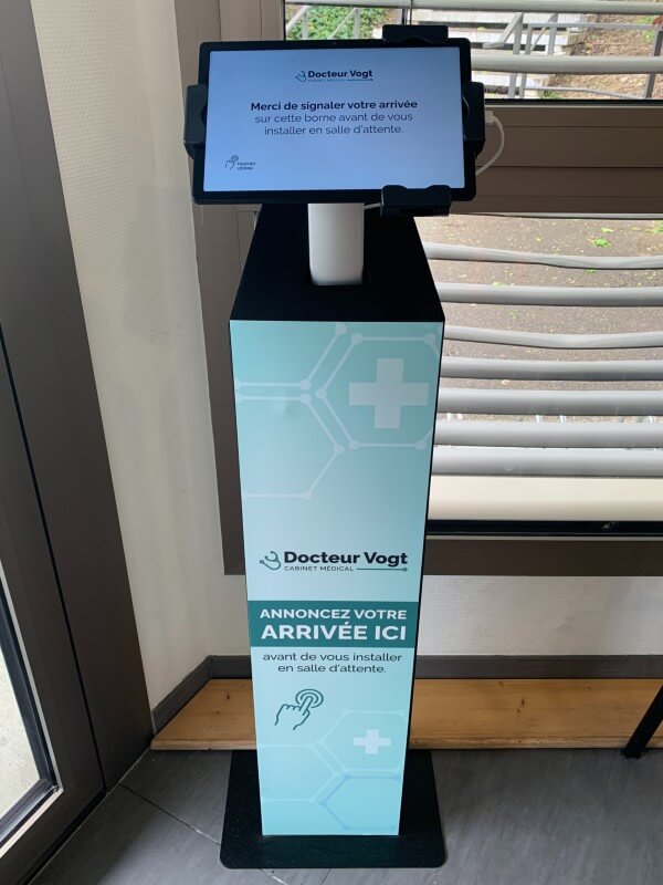 Borne d’accueil développée pour fluidifier la prise en charge des patients en salle d’attente par l’ensemble des médecins du cabinet.