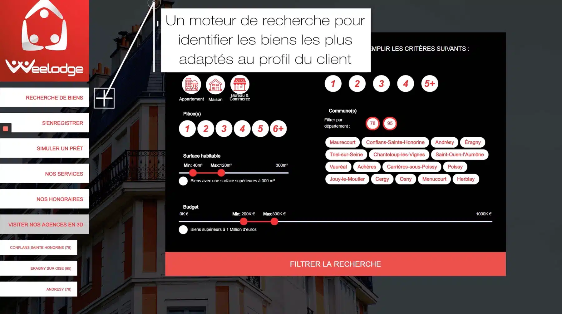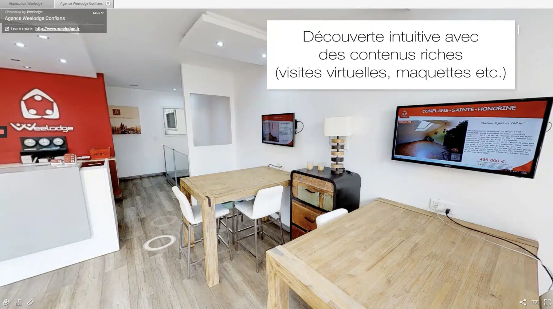 L’application dépasse l’affichage traditionnel présent dans les vitrines d’agences immobilières. Elle permet de découvrir les logements sous tous les angles grâce aux galeries photos.