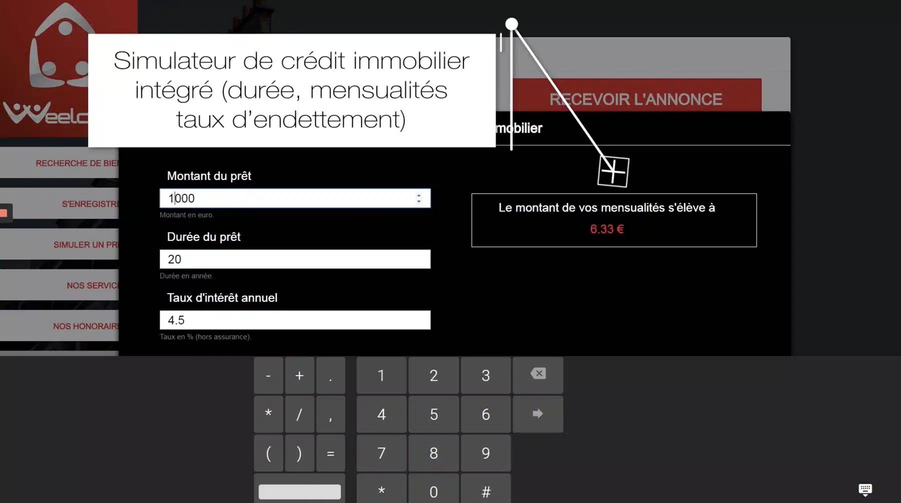 L’application propose un simulateur de prêt afin d’obtenir des estimations sur les conditions de son projet d’achat (montant maximal, durée adéquate, taux d’endettement, etc).