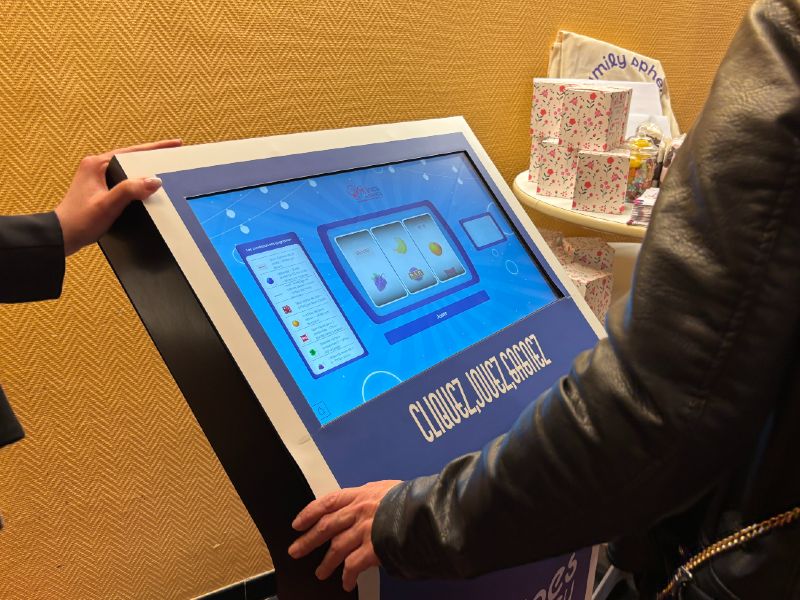 - L’intégration matérielle : Nous choisissons et personnalisons le hardware (borne, écran, etc.) qui servira de véhicule à l’expérience. C’est le corps de la machine.