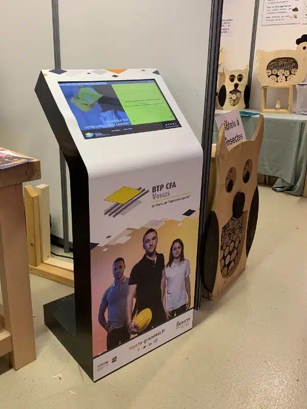 Le logiciel Kiosk Multisites dispose de nombreuses fonctionnalités comme le retour à l’accueil de votre site après un temps d’inactivité, la création d’un écran de veille entièrement personnalisable à votre charte graphique lorsque le dispositif tactile n’est pas utilisé par un visiteur, ou encore l’apparition d’un clavier virtuel pour saisir des informations sur votre site (formulaire, barre de recherche, etc).