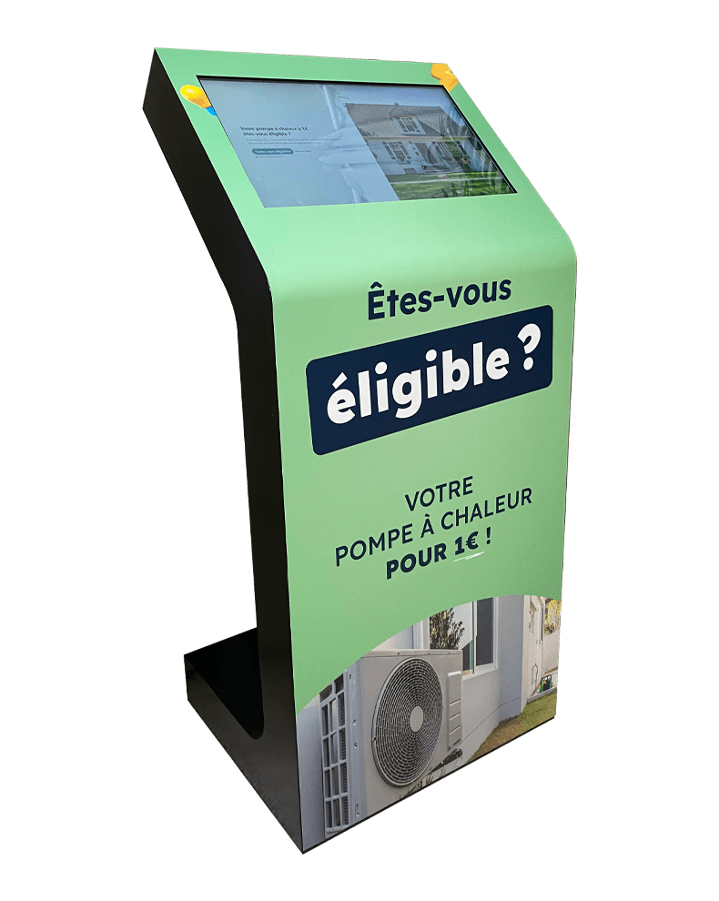 Boostez vos prises de rendez-vous pour les aides à la rénovation énergétique grâce à notre borne de collecte intelligente. Installée en magasin, sur un stand ou lors d’un événement, elle permet aux propriétaires de tester en quelques clics leur éligibilité aux subventions et de laisser leurs coordonnées en toute confiance.