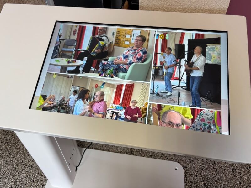 Cette interface intuitive, accessible via une borne tactile, a pour vocation de dynamiser la vie quotidienne de l’établissement et de renforcer la communication avec les résidents et leurs proches.