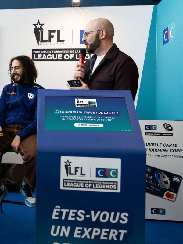 Le Quiz Interactif est l’animation parfaite pour dynamiser votre stand ou point de vente. Offrez à vos visiteurs une expérience ludique et enrichissante tout en testant leurs connaissances et en collectant des contacts qualifiés. Entièrement personnalisable et intuitive, cette solution s’adapte à votre image pour un maximum d’impact et une communication interactive réussie !