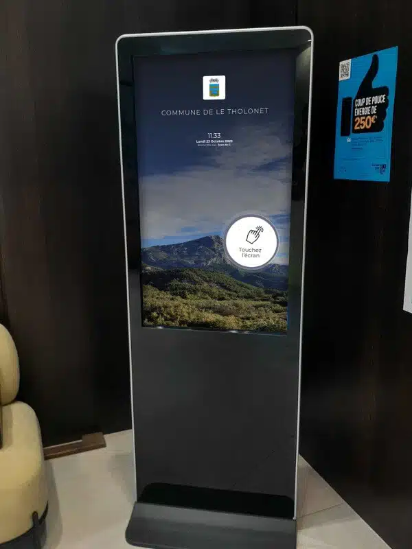 Un totem tactile est un support de communication interactif vertical combinant un écran tactile haute définition et un châssis au design épuré. Contrairement à l’affichage statique traditionnel (affiches, panneaux), ce totem numérique rompt la passivité : il capte l’attention par le mouvement et permet au public de devenir acteur de sa recherche d’information en naviguant directement sur l’interface.